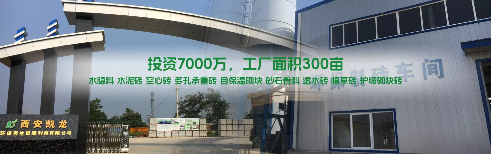 西安凯龙环保再生资源利用有限公司2014年成立,投资7000万,工厂面积300亩,专业生产水稳料,水泥砖,空心砖,多孔承重砖,自保温砌块,透水砖,植草砖,护坡砌块砖的厂家,地址位于西安市阎良区振兴街道办龙游村杨任组,西安,咸阳,渭南,铜川,三原,高陵,富平,蒲城,临潼均可送货。